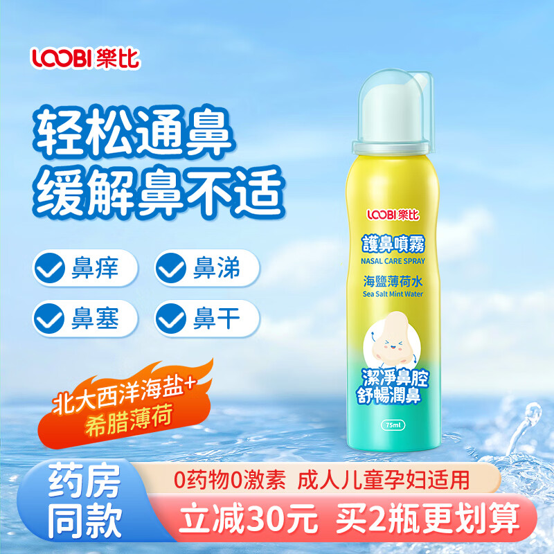 ¥19.8 乐比(LOOBI)韩国进口海盐薄荷洗鼻腔喷雾洗鼻器 成人儿童生理盐水洗鼻剂 护鼻喷雾75ml 69.8