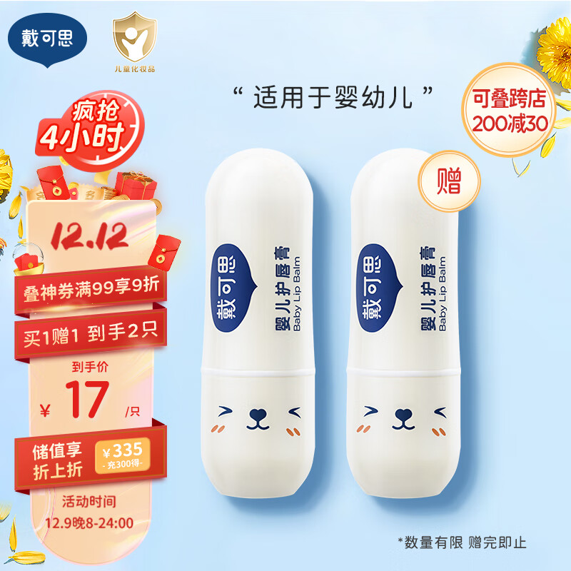 ¥29 戴·可·思 婴儿护唇膏 儿童唇膏 宝宝润唇膏 持久保湿防干裂 3.6g 39