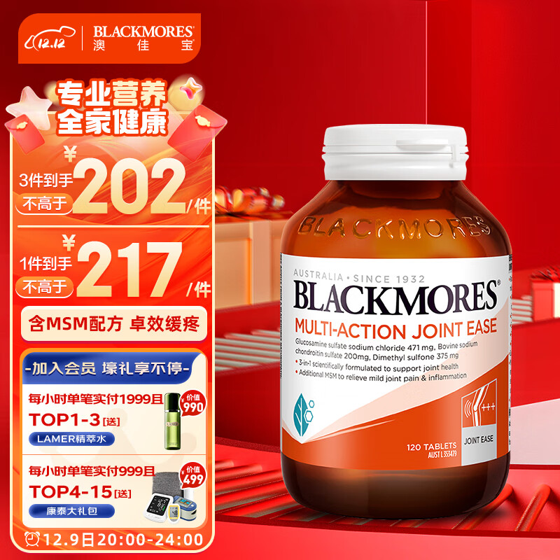 ¥339 澳佳宝Blackmores氨糖软骨素三合一配方富含MSM缓痛成分 高浓氨糖 软骨素120粒/瓶中老年成人关节灵澳洲进口 344