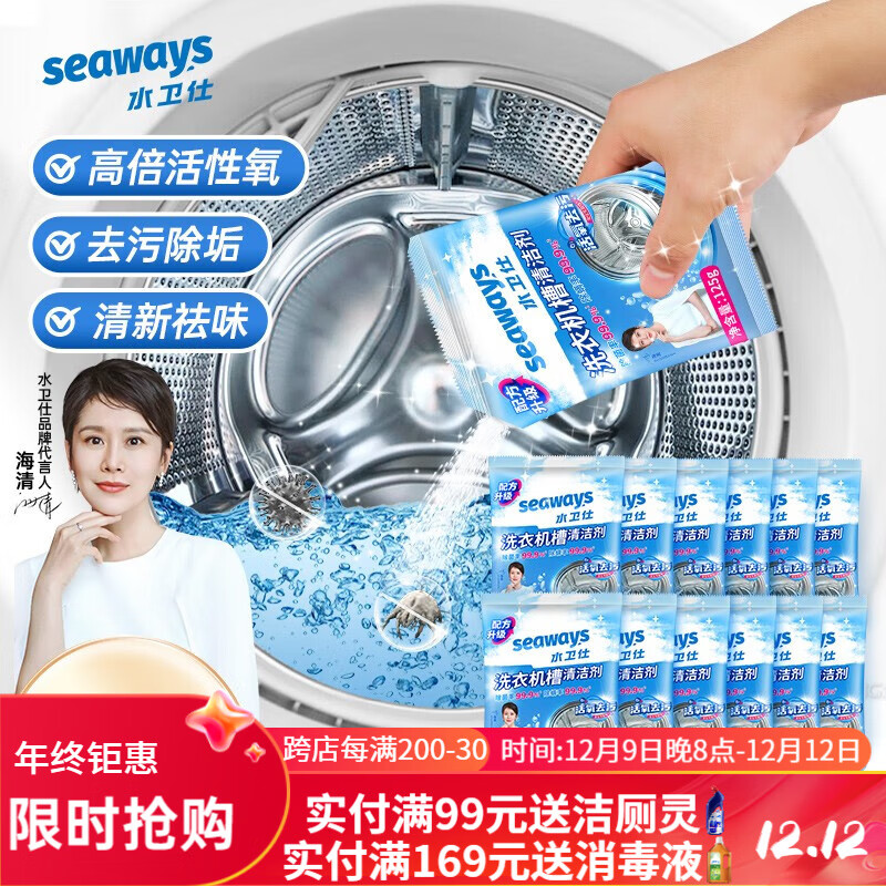 ¥15.9 水卫仕(seaways)洗衣机清洁剂 家用滚筒波轮洗衣机槽清洗剂 除垢去污去异味 7包【超值半年套装】 21.9