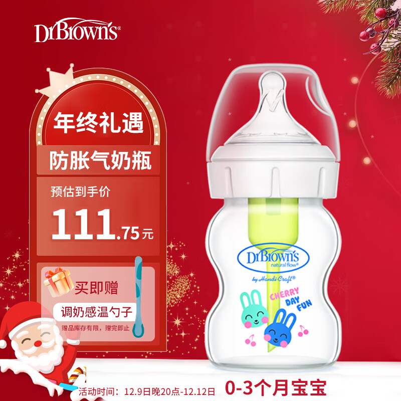 ¥139.1 布朗博士奶瓶 新生儿奶瓶 婴儿防胀气奶瓶 玻璃奶瓶150ml(0-3月龄)快乐兔 149