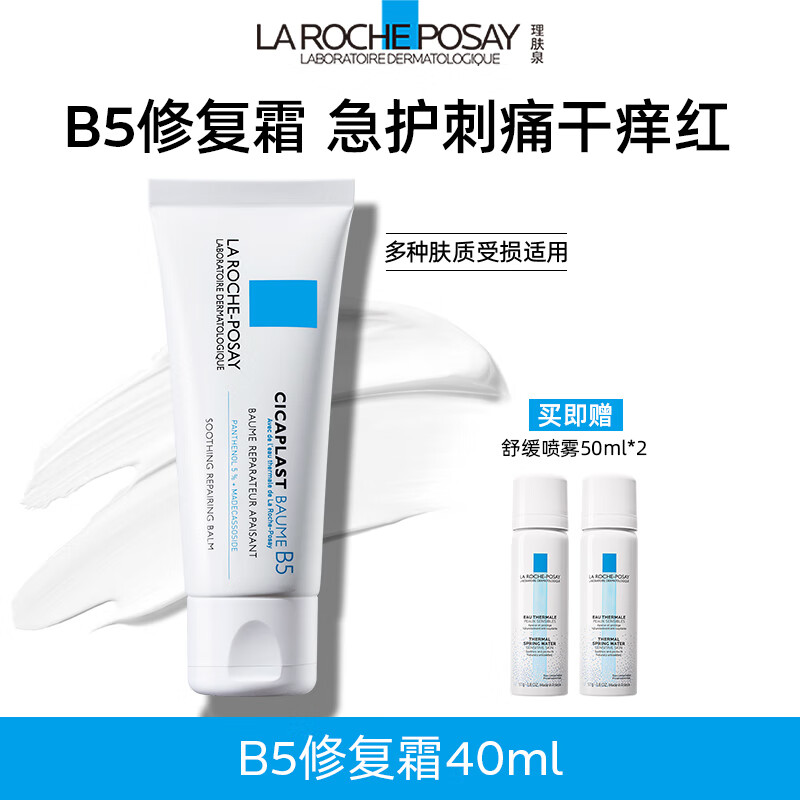 ¥124 理肤泉B5修复霜40ml+喷雾50ml*2舒缓泛红补水保湿修护面霜护肤品男女 129