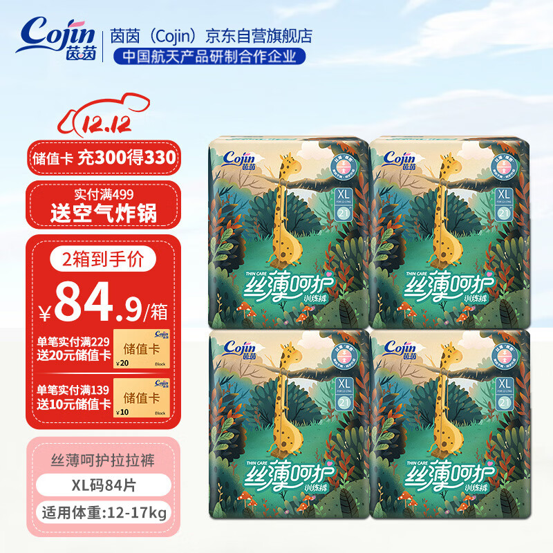 ¥99.78 茵茵cojin丝薄呵护拉拉裤XL84片(12kg-17kg)学步裤夜用防漏 99.88