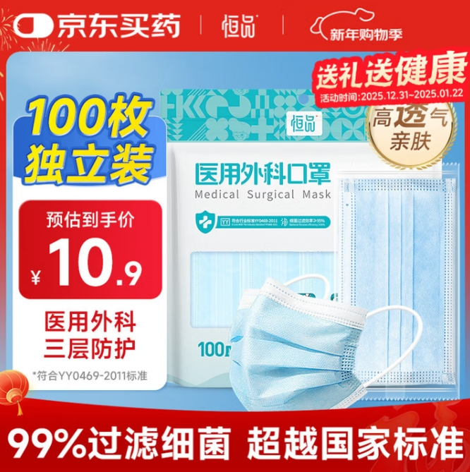 9.9元包邮!醫.用.外.科口罩100片