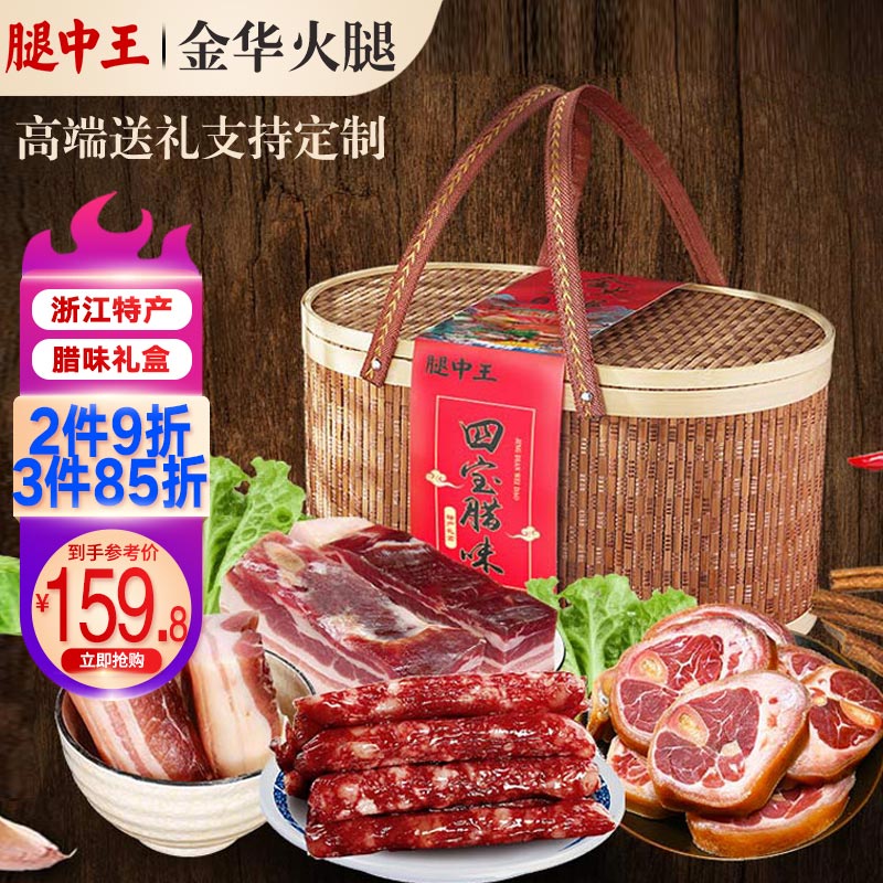 ¥178 腿中王金华火腿竹篮礼盒1200g浙江特产腊味食品企业团购年货节送礼品 188