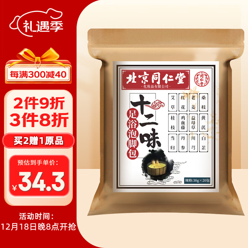 ¥65 同仁堂泡脚药包暖足十二味草本足浴包红花艾草叶瑶浴包30g*20包 70