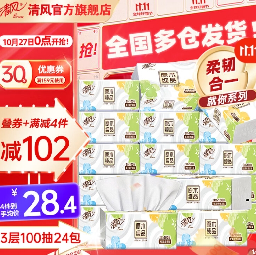 ¥23.9 猫人一次性洗脸巾加大厚珍珠纹棉柔巾悬挂式亲肤超柔擦脸卸妆巾 柔软珍珠纹(两盒装300抽) 38.9