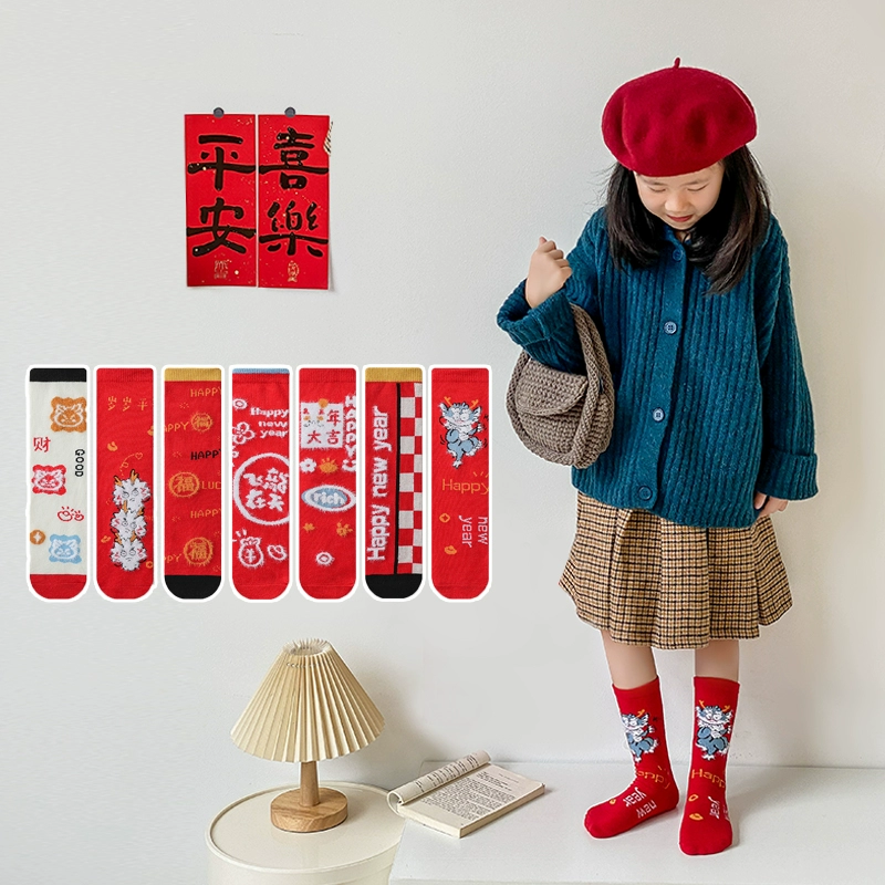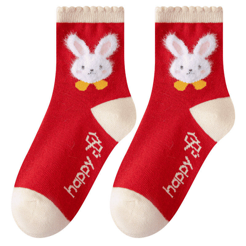 ¥12.88 儿童袜子秋冬款棉袜新年大红袜4双 20.88