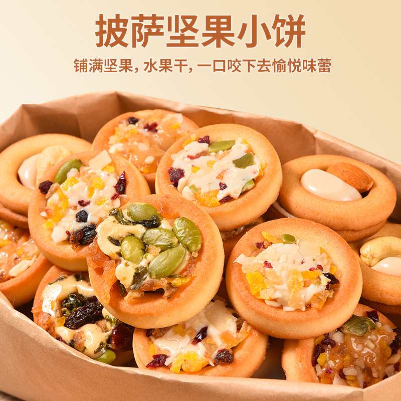 ¥11.00 法思觅语坚果披萨小饼干巴旦木牛轧坚果夹心好吃休闲追剧解馋零食 11.00