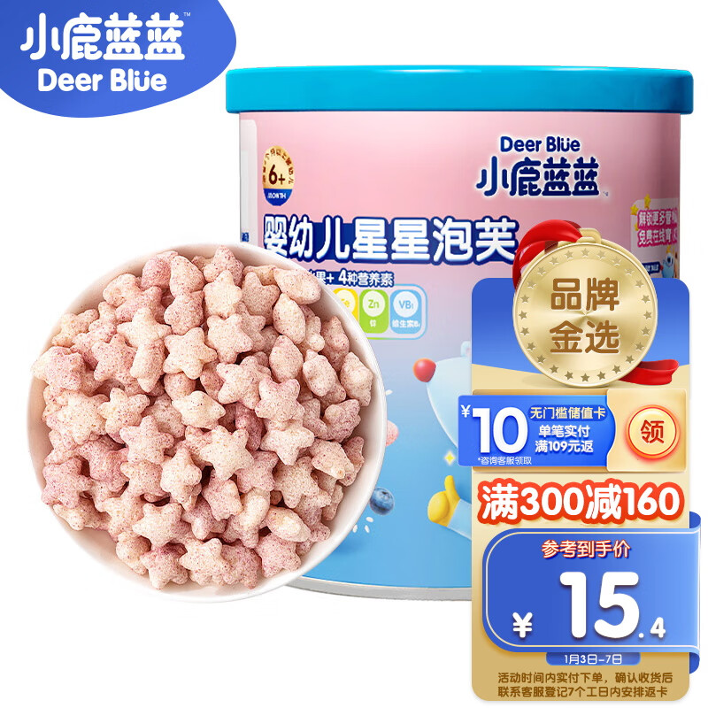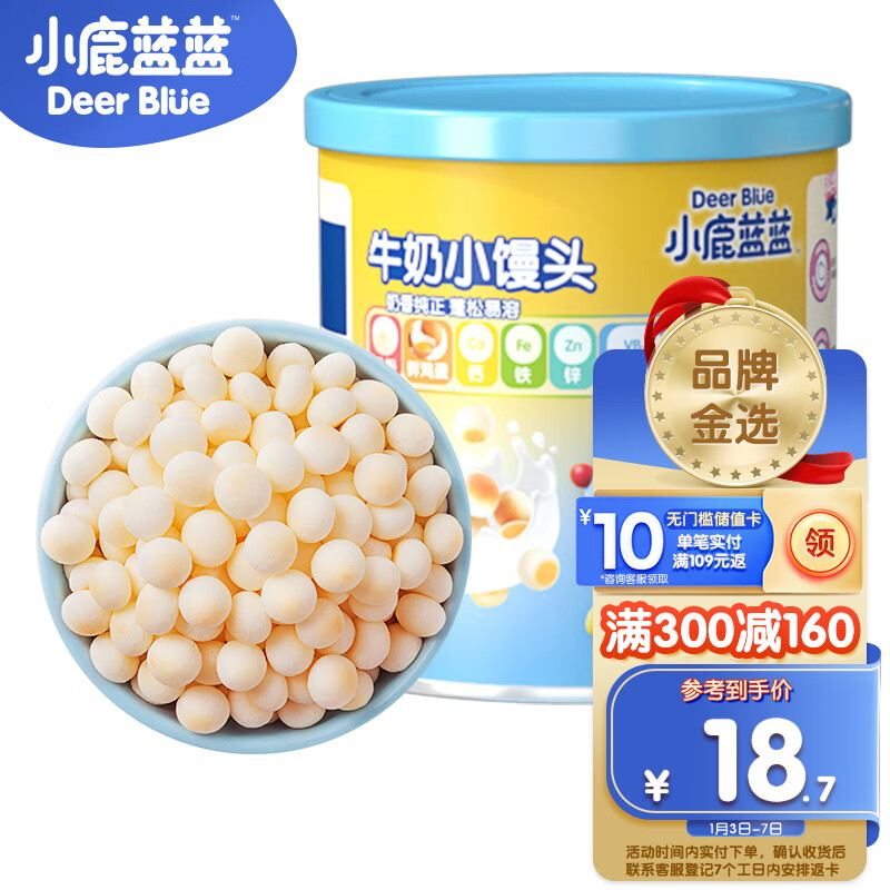 ¥30.9 小鹿蓝蓝_牛奶小馒头 儿童零食溶溶豆童饼干易吞咽 160g 39.9