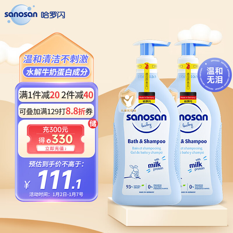 ¥133.52 哈罗闪(sanosan)婴儿儿童洗发沐浴露二合一1000ml【0-12岁】新生儿用品低敏温和 149