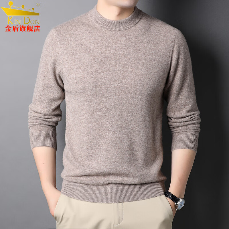 ¥49 金盾/KIN DON羊毛衫男冬款男士加厚圆领毛衣商务休闲羊毛针织打底衫 驼色 175/XL建议135-155斤 159