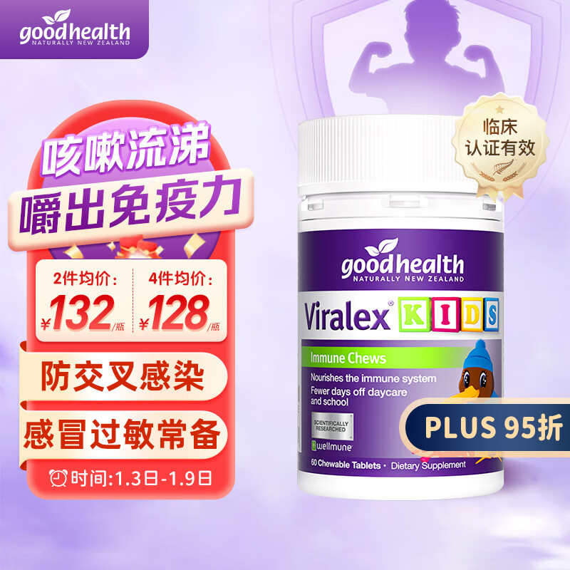 ¥174.8 goodhealth免疫嚼嚼乐酵母葡聚糖益生菌维生素vc锌婴幼儿童抵抗力过敏体质肠胃腹泻进口60粒 184.8