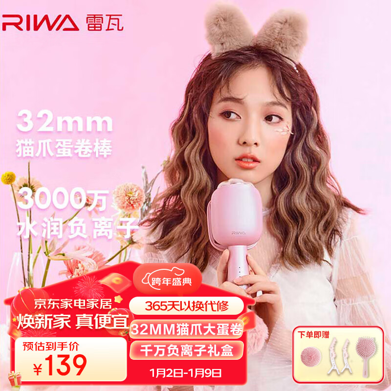 ¥139 雷瓦(RIWA)卷发棒蛋卷棒夹板负离子大蛋卷水波纹烫发棒卷发神器卷发器蛋蛋卷发棒 新年礼物8120负离子夹板 189
