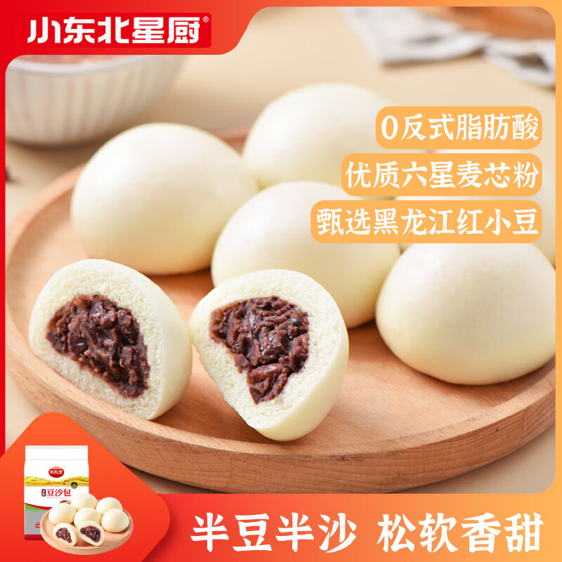 ¥20.9 小东北星厨 豆沙包800g 约26个 半豆半沙红小豆包 儿童早餐主食面点 24.9