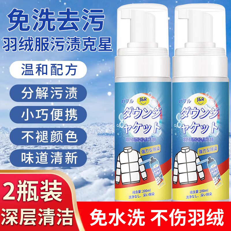 ¥9.9 洁饶羽绒服清洗剂2瓶*200ml免水洗干洗衣物去污渍清洁泡沫白衣服去油 2瓶装 39.9