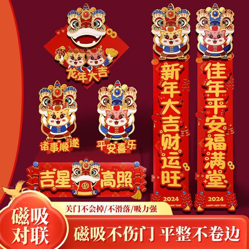 ¥15.9 小滿熊 磁吸对联龙年春联2024新款烫金加厚春联过年春节门福门挂对贴 款式随机 6件套【磁吸款】 25.9
