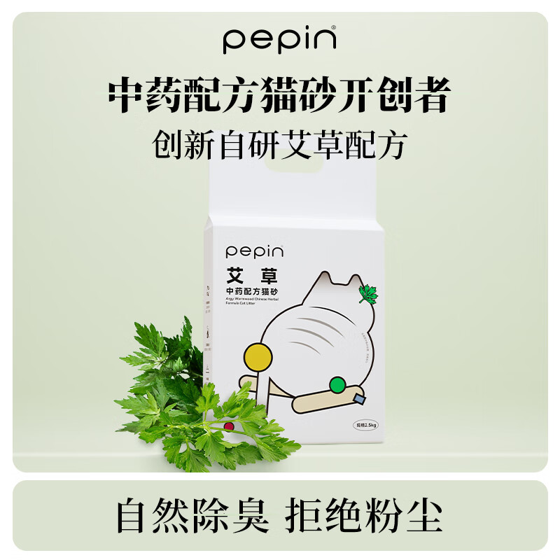 ¥16.9 PEPIN艾草猫砂低粉尘易结团混合猫砂豆腐矿砂膨润土可冲马桶 中药配方猫砂(金银花)2.5kg 配方猫砂 29.9