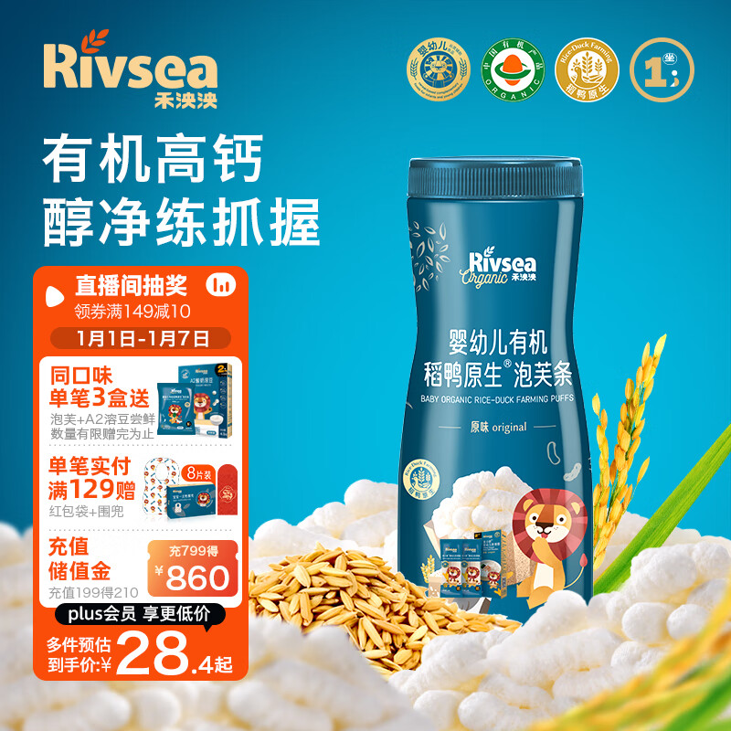 ¥38.8 禾泱泱婴幼儿有机泡芙条 宝宝零食6个月以上 稻鸭原生泡芙条原味32g 39.8