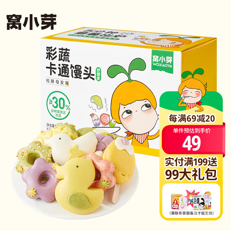 ¥59 窝小芽 卡通馒头礼盒 30%果蔬泥含量儿童馒头早餐营养无添加剂550g 69