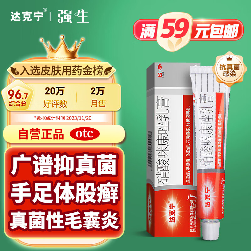 ¥20.1 达克宁软膏硝酸咪康唑乳膏20克/支治脚气药止痒脱皮烂脚丫真菌感染止痒脚气膏股藓膏甲癣花斑癣抗真菌感染 23.1