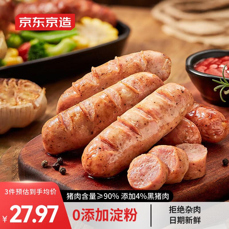 ¥27.9 京东京造 黑胡椒风味猪肉肠600g/10根 0添加淀粉 黑猪鲜肉肠 纯肉烤肠 32.9