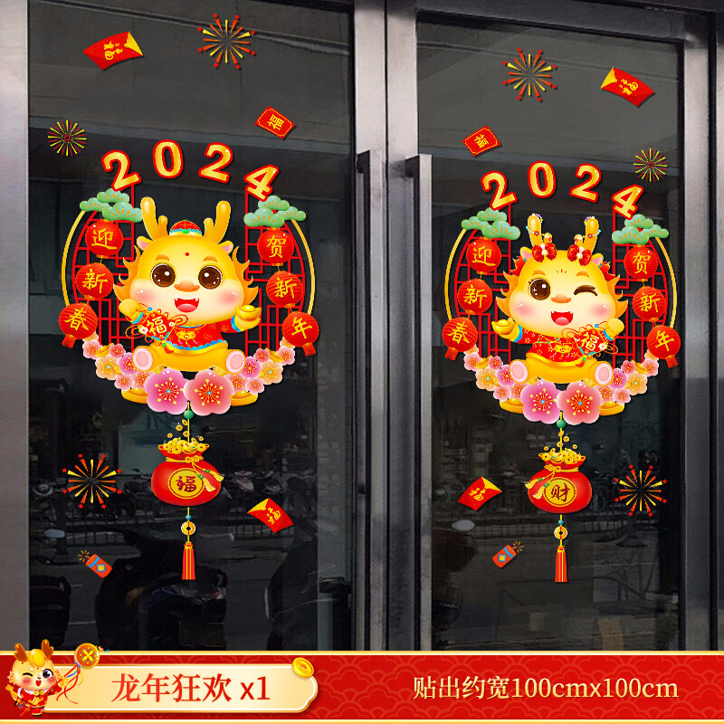 ¥3.6 千棵树 2024龙年贴纸新年贴画门贴春节过年玻璃贴纸窗花贴元旦装饰贴纸 龙年狂欢 大 8.6