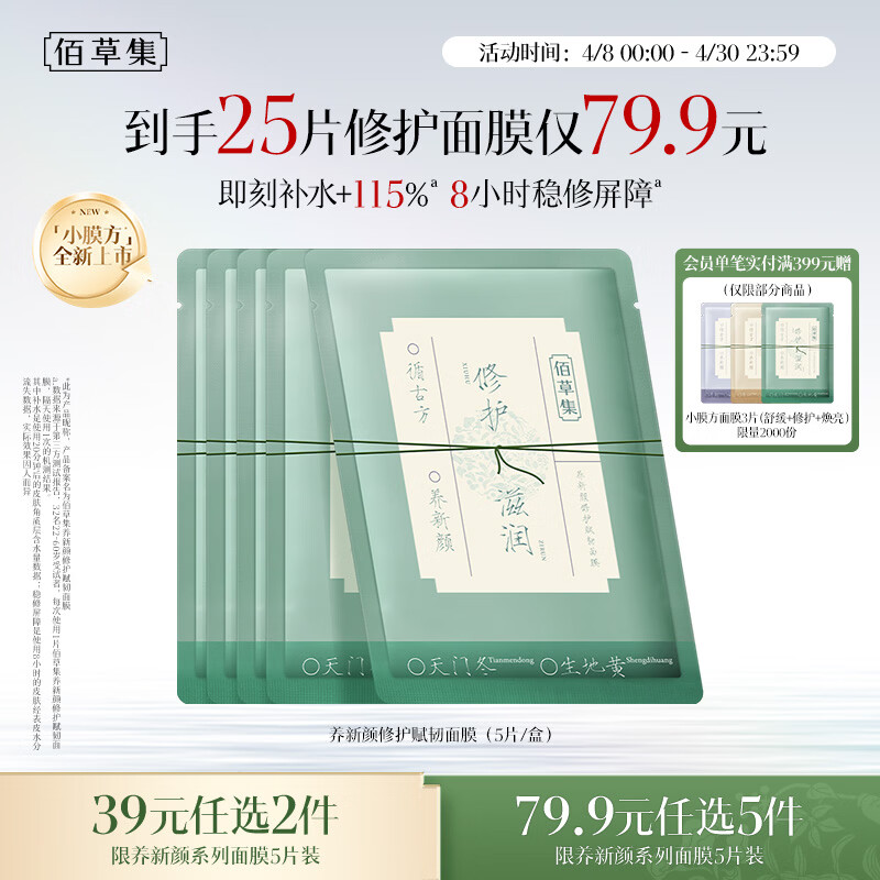 佰草集修护面膜5件24元,母亲节送妈妈好礼