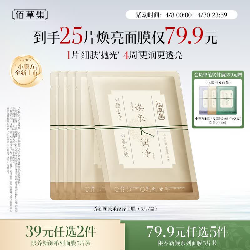 佰草集养新颜凝采蕴泽面膜5片到手26.7元
