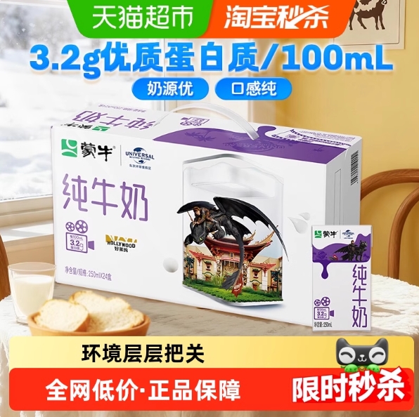 37.4元包邮!蒙牛全脂纯牛奶250ml 24盒