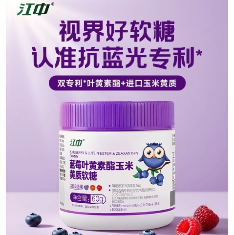 10.9元包邮!江中专利叶黄素酯蓝莓软糖片