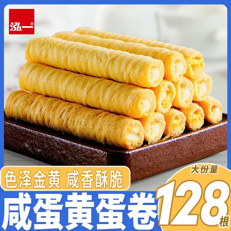 ¥24.9 泓一 咸蛋黄蛋卷饼干零食小吃网红儿时酥心卷好吃的休闲食品整箱H 【400g*2箱】约32包 29.9
