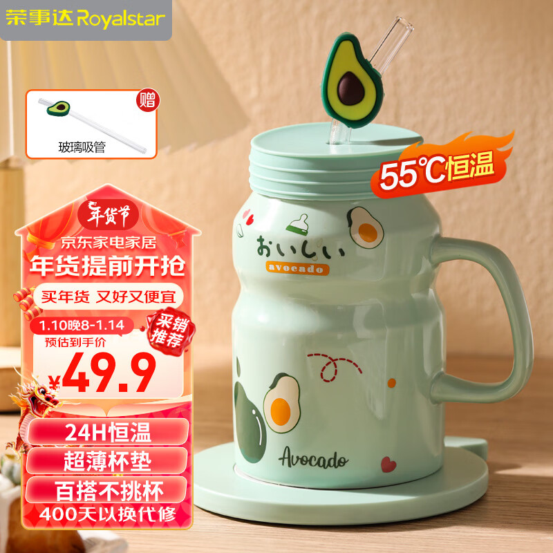¥29.9 荣事达(Royalstar)陶瓷杯加热杯垫保温杯养生杯恒温加热器保温杯垫办公室温牛奶电热杯垫暖暖杯创意礼品RS-HR22L1 49.9