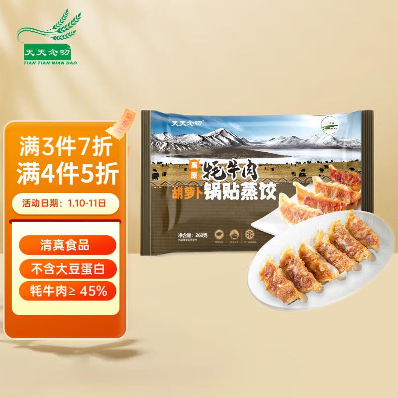 ¥23.9 天天念叨牦牛肉胡萝卜锅贴蒸饺260g袋 速冻水煎饺子 青海高原清真食品 29.9