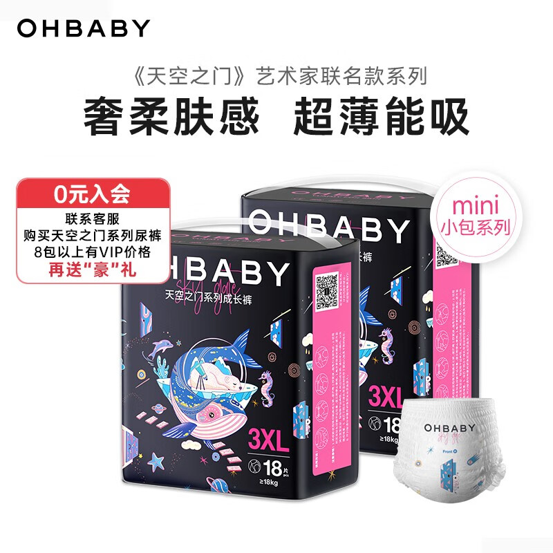 ¥59 欧贝比OHBABY天空之门小包纸尿裤尿不湿拉拉裤超薄透气防漏【11码可选】 拉拉裤3XL码18片*2包 89