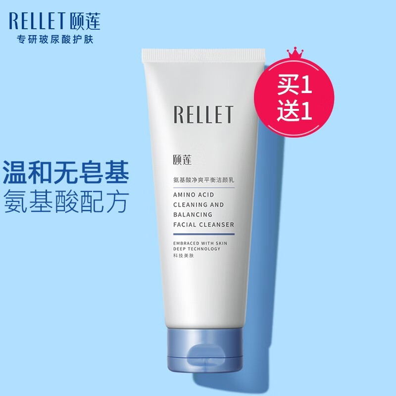 ¥29.9 颐莲(RELLET)颐莲氨基酸洗面奶100g 深层清洁温和净透男女洁面控油AAA 39.9