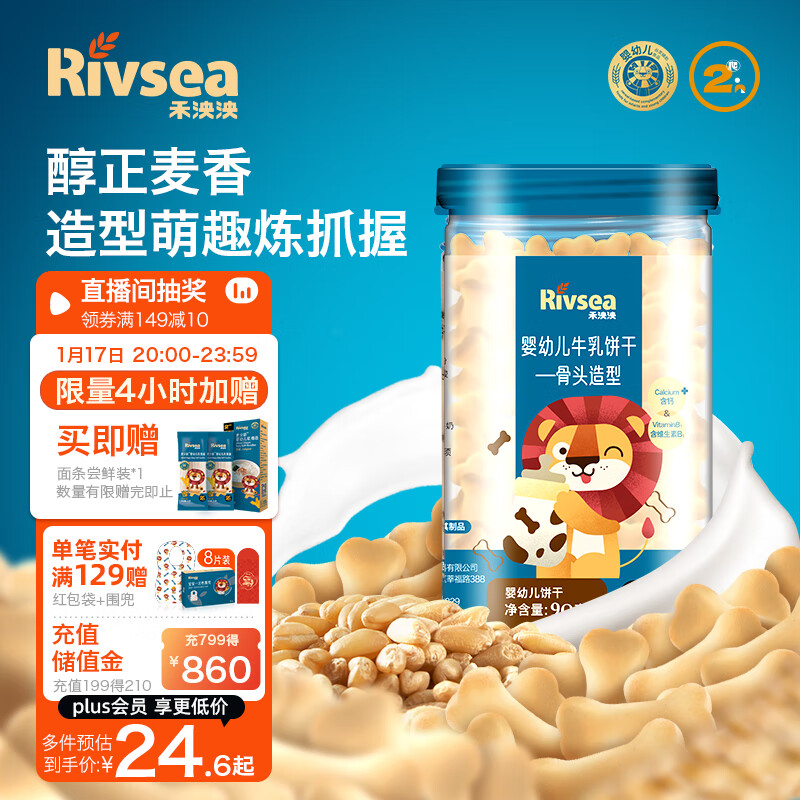 ¥31.8 禾泱泱婴幼儿饼干 宝宝零食 7个月以上 牛乳饼干骨头造型90g 32.8