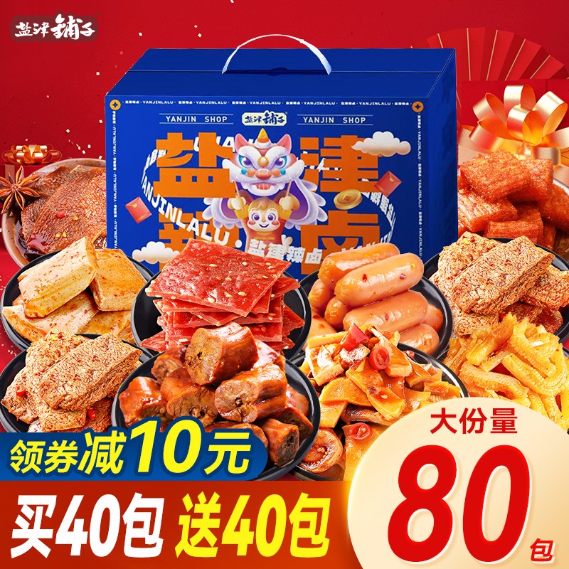 ¥29.9 盐津铺子 零食大礼包肉类辣卤类办公休闲零食麻辣条鱼豆腐豆干礼包礼盒 【买40包送40包】团购送礼礼包 39.9
