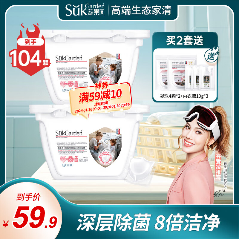 ¥39.9 蔬果园(SukGarden)护色香氛洗衣凝珠 护衣柔顺 持久留香 除螨抑菌 洗衣球 除菌香氛洗衣凝珠104颗 69.9