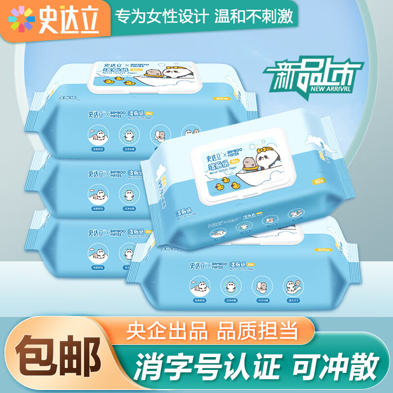 ¥18.9 史达立(shidali)史达立湿厕纸家庭装厕所湿巾厕纸清洁湿纸巾湿巾擦走细菌80抽*5包 28.9