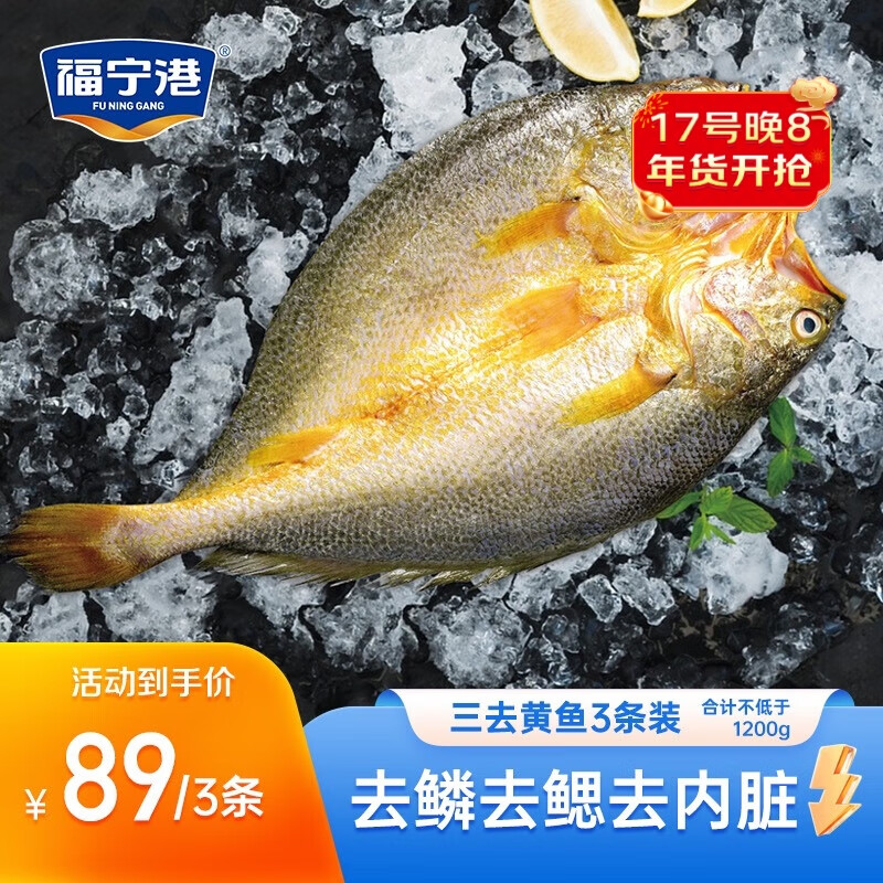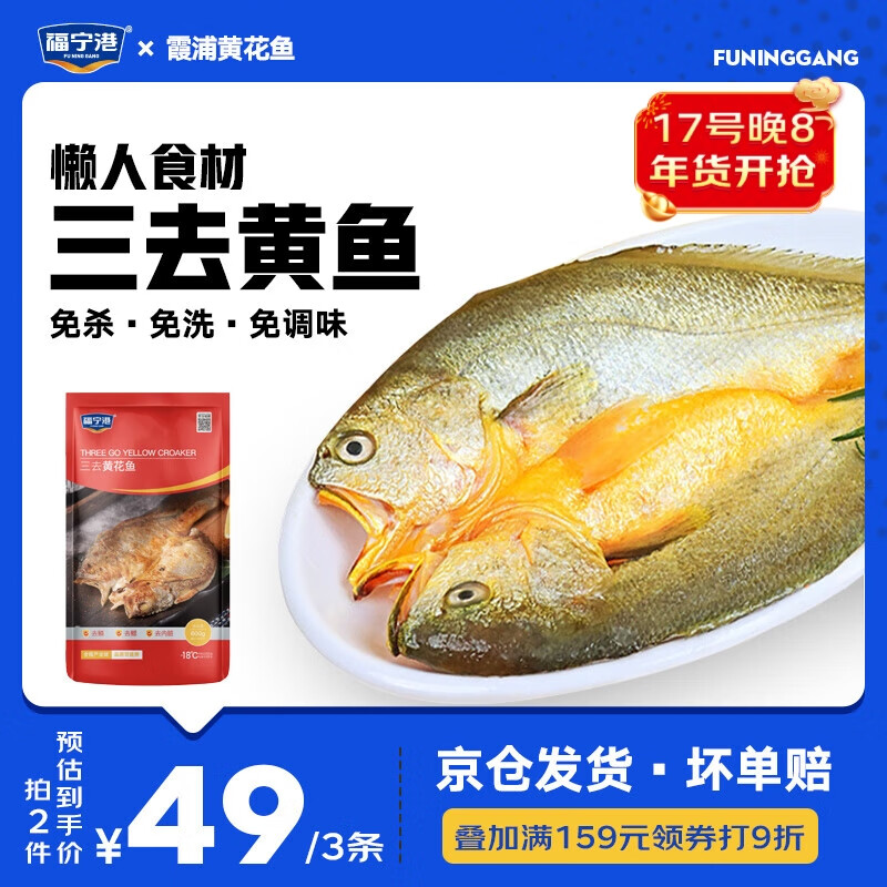 ¥94 福宁港 醇香黄鱼鲞 三去开背 深海大黄鱼 鱼类生鲜 海鲜水产 年货家宴 三去黄花鱼3条装(共1200g) 109