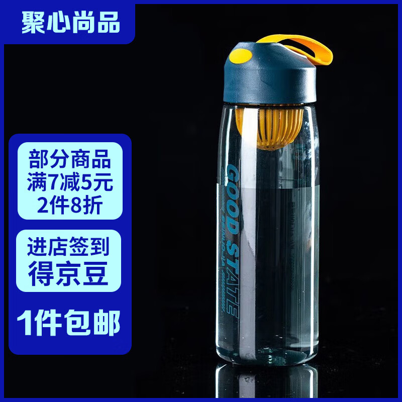 ¥9.9 聚心尚品 简约运动水杯女夏季便携大容量健身杯子男学生塑料杯带茶漏 A0607湖光蓝【480ML】 480ml 14.9