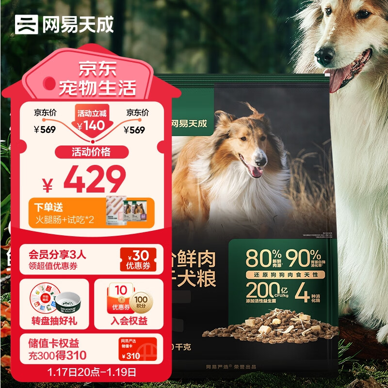 ¥399 网易天成全阶段通用狗粮高鲜肉含量易消化益生菌冻干双拼鲜肉犬粮 10千克 429
