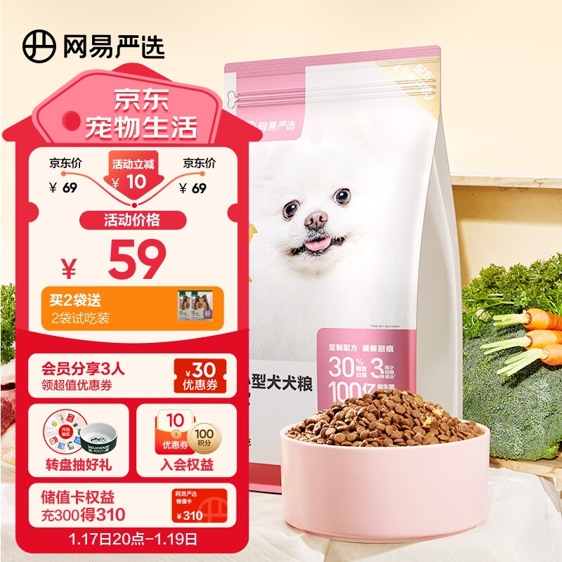¥54 网易严选 全价狗粮犬粮 宠物主粮小型犬幼犬全期通用宠物食品 2kg 59