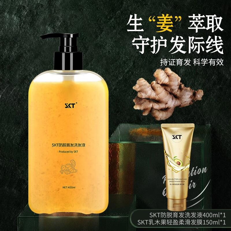 ¥19.9 SKT生姜洗发水男女强根健发去屑止痒防脱防溢脂老姜王姜汁真姜粒添加 生姜洗发水400ml+护发素150ml 69.9