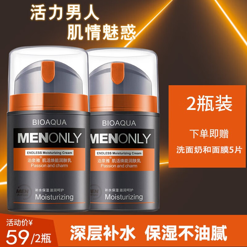 ¥29 泊泉雅男士面霜保湿擦脸油润肤霜护肤霜保湿露乳液冬季秋冬护肤品脸霜 两瓶装【白色滋润款】 59
