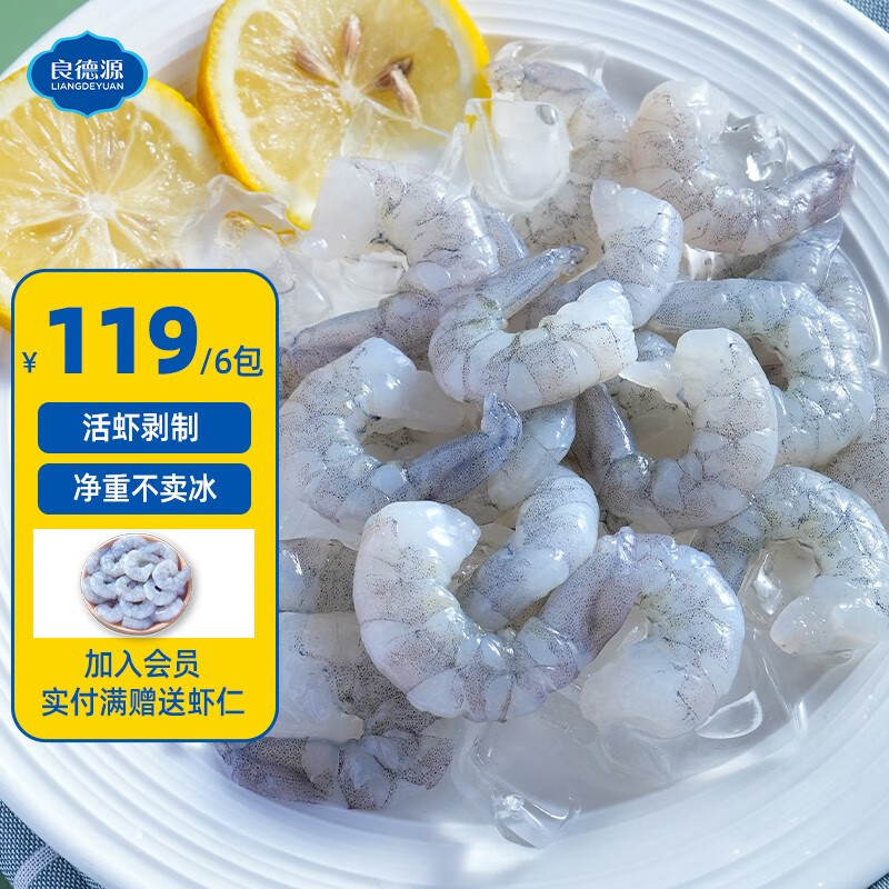 ¥99 良德源 国产北海大号青虾仁净重120g不含冰鲜活大虾手工去虾线生鲜 虾类 净重120g6包不含冰 129