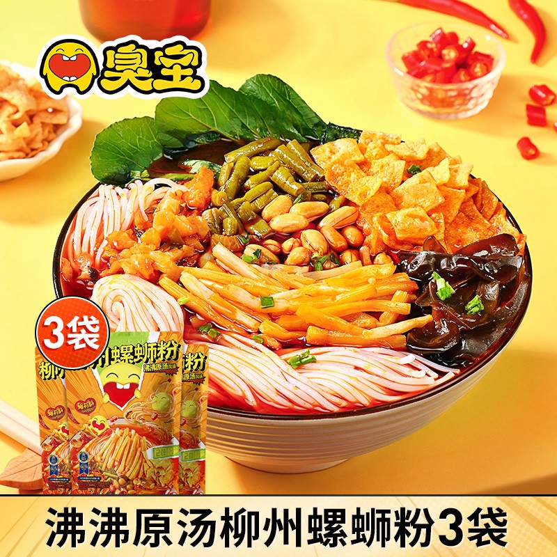 ¥34.9 臭宝 螺蛳粉浓汤味广西柳州特产米粉酸笋袋装螺丝粉方便速食 沸沸原汤两包酸笋350g*3袋 39.9
