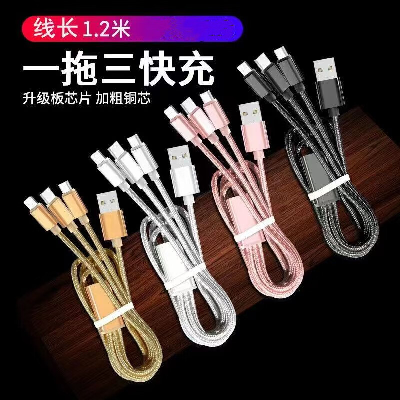 ¥4 登谷三合一手机充电线适用iPhon安卓type-c一拖三数据线编织线 颜色随机【编织一拖三】 10