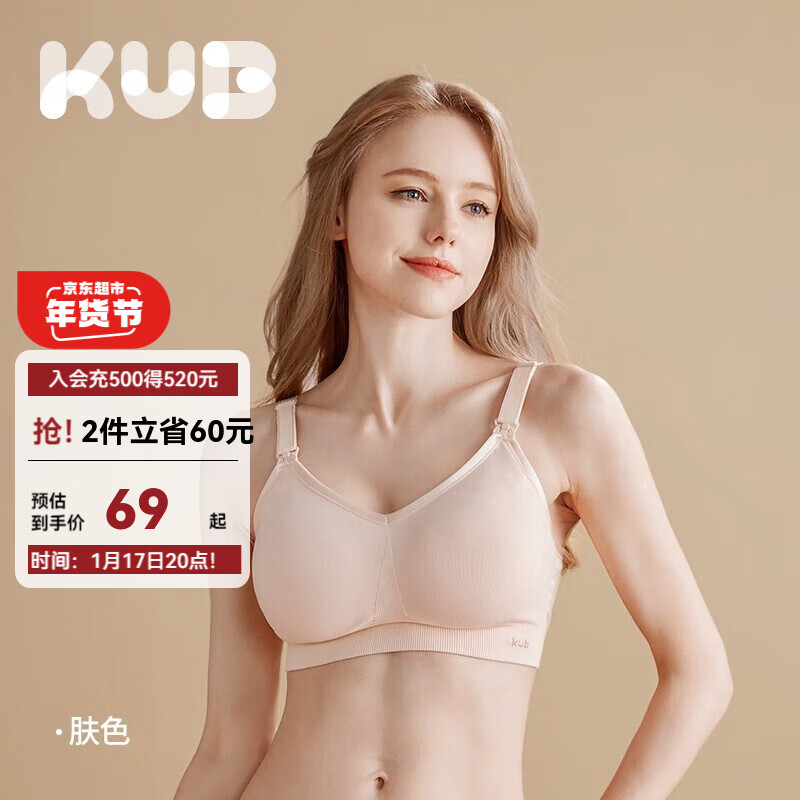 ¥89 可优比(KUB)孕妇哺乳文胸内衣无钢圈胸罩怀孕期聚拢喂奶衣 柔和肤-不含内裤 L 99